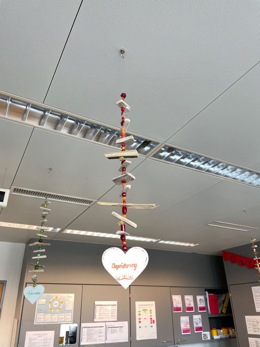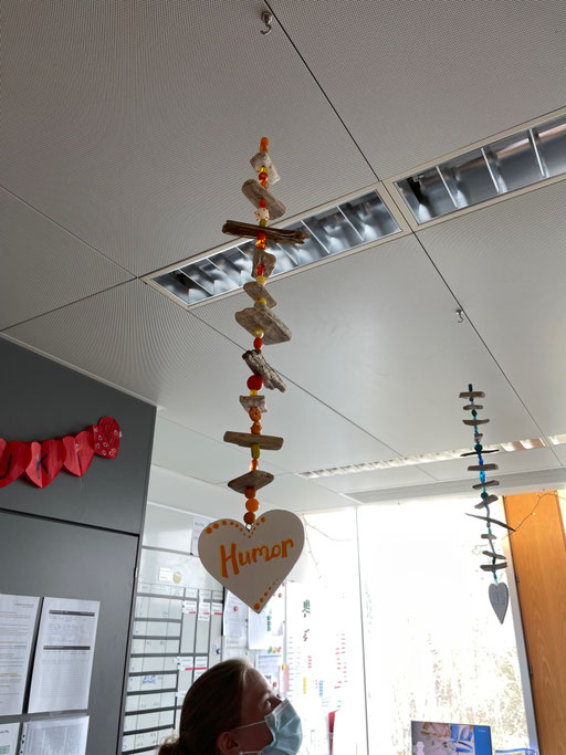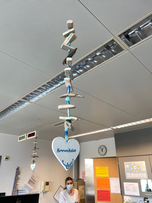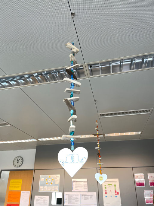 Gerne melde ich mich wieder, um dir noch Fotos von unserer kreativen Umsetzung zu unseren Werten zu zeigen. Die Mobile hängen bei uns mitten im Dienstplatz und begleiten uns nun täglich. Im Team geht es uns gut, die Werte scheinen mir im Moment sehr gelebt und das freut mich. Wir haben unsere Prozesse diesbezüglich noch etwas angepasst und das läuft gut.